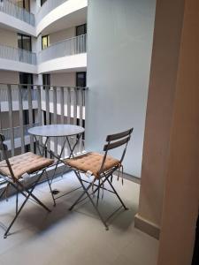 Cada apartamento cuenta con una cocina totalmente equipada que incluye microondas, placa eléctrica, frigorífico, cafetera y hervidor eléctrico. La zona de estar incorpora un televisor pantalla plana. Las habitaciones ofrecen vistas al patio interior y se accede a las plantas superiores mediante ascensor.