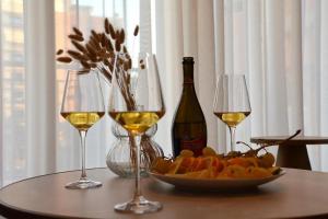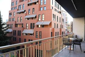 Das Apartment verfügt über einen Balkon mit Stadtblick und ein separates Eingangstor für mehr Privatsphäre. Es umfasst ein Schlafzimmer, ein Wohnzimmer mit ausziehbarem Sofa sowie zwei Badezimmer mit begehbaren Duschen. Die Küche ist modern ausgestattet - unter anderem mit Geschirrspüler, Backofen und Kochfeld - und lädt zum gemeinsamen Kochen ein. Im Außenbereich steht eine Essgelegenheit bereit, die zur ruhigen Straße hinausblickt.