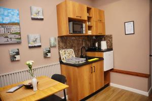 Each apartment includes a private bathroom with a bathtub and hairdryer, along with a kitchen equipped with a microwave, toaster, and refrigerator. Guests can relax in the seating area featuring a flat-screen TV while enjoying complimentary chocolates or cookies.