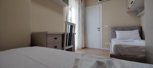 The accommodation features two bedrooms and a bathroom equipped with a bathtub along with essential toiletries such as soap and shampoo. Guests can enjoy fresh air on a balcony overlooking a quiet city street or relax indoors where air conditioning ensures comfort throughout their stay.