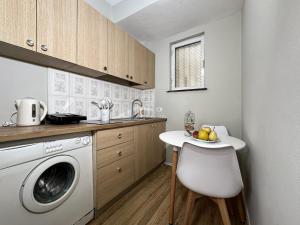 Este apartamento cuenta con una habitación acogedora y un baño equipado con bidé y pantuflas para mayor comodidad. La cocina integrada dispone de nevera y todo lo necesario para preparar comidas sencillas. En la sala principal hay un sofá cama desplegable frente al televisor pantalla plana, creando un espacio perfecto para relajarse tras explorar la ciudad.