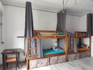 The hostel features air-conditioned rooms with hardwood or parquet floors equipped with heating and fans for comfort. Each room includes a sofa bed and a desk along with dining areas and lockers. Bathrooms are shared but stocked with soap by the sink and shower, some include bathtubs or showers, complemented by hairdryers.