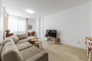 Este amplio apartamento de un dormitorio incluye una zona de comedor y una cocina completamente equipada con horno, frigorífico, hervidor eléctrico y cafetera/tetera. El salón cuenta con televisión de pantalla plana, conexión Wi-Fi gratuita en todo el apartamento y se proporcionan ropa de cama y toallas. El baño está equipado con ducha y bañera, además de champú, jabón y zapatillas para mayor comodidad.